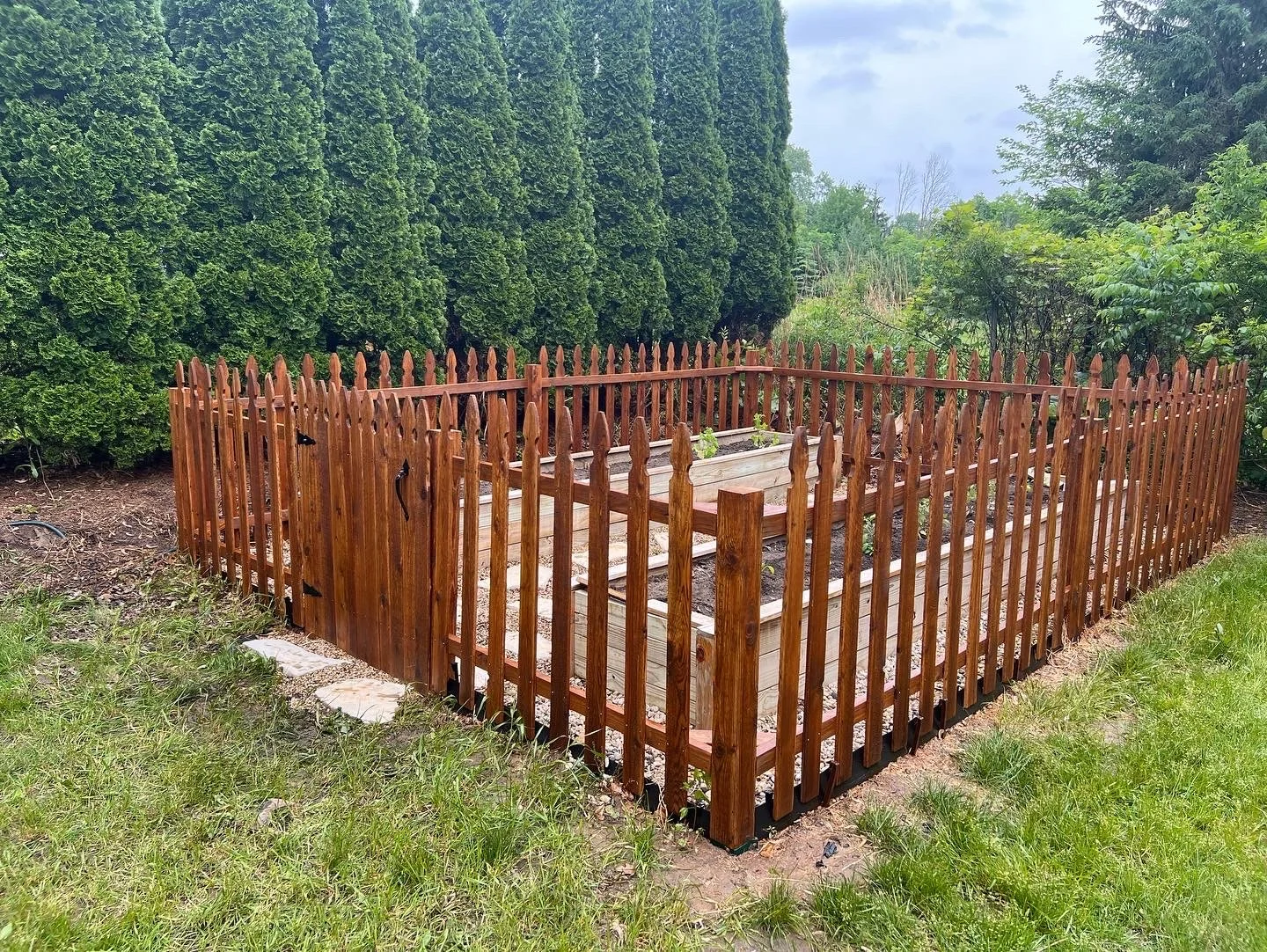 This beautiful cedar garden fence was only a few years old and already was pretty grey in color. The customer wanted to try to revive the fence and bring back some of the natural cedar tone beauty that it once possessed. Keeping this in mind we choose to go with a Cedar tone transparent stain and seal product on this one. We did our 2-step wash/brighten process and then it was ready for the stain and seal application. overall, it turned out to be a great looking project.